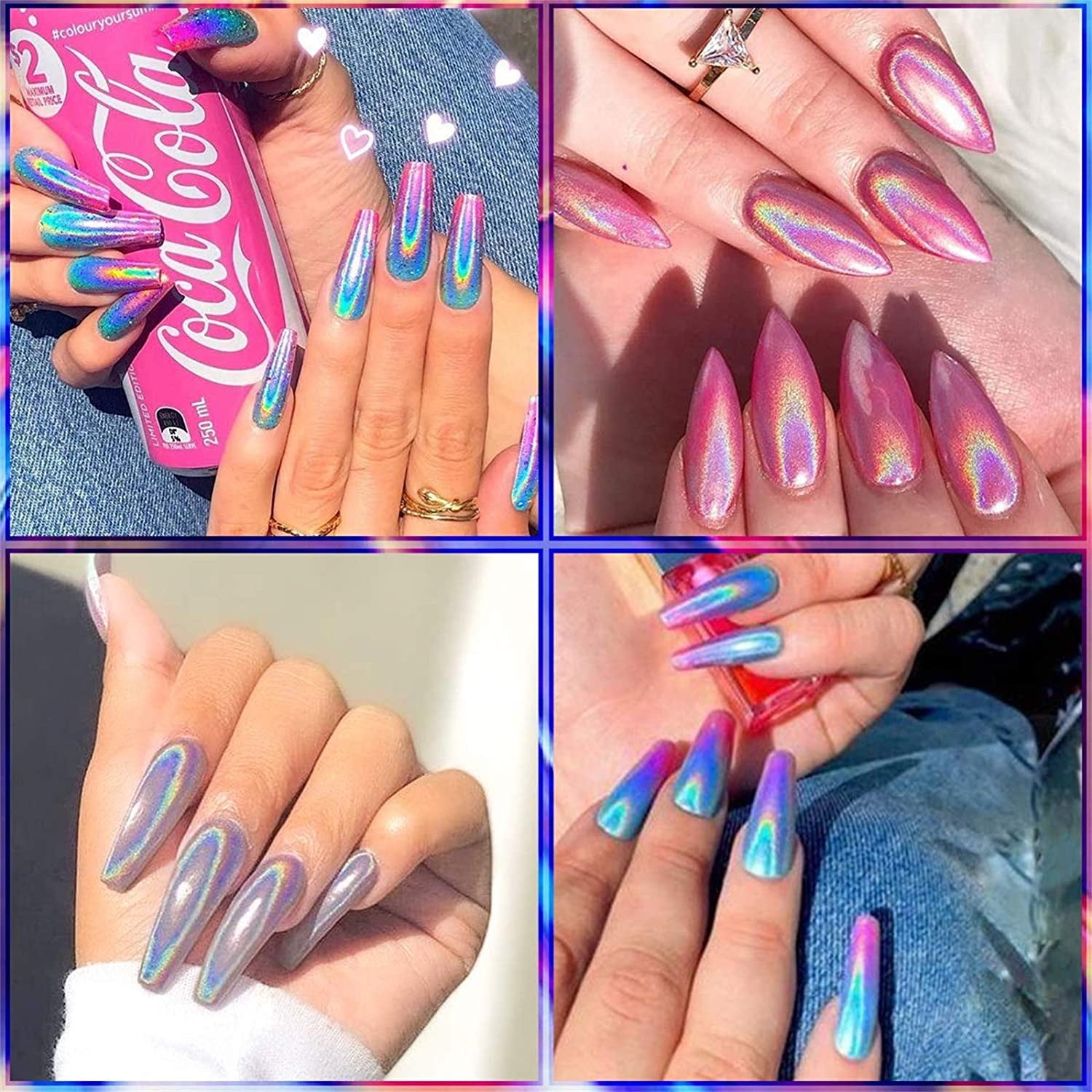 Chrome Nail Powder Holographic Gold Nail Powder 6 Colors Mirror And Bubble Effect Nail Art Decoration Manicure Pigment Set Walmart Canada